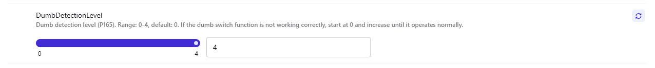 Could you test the configuration option by increasing to 1, test it, 2 test it, etc? You can also do this by the button combo method mentioned in the white series thread.