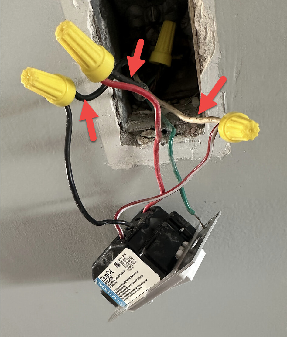 this is before I put the Inovelli in - was using as reference to match wires from the old Lutron box to know where they should go in the Inovelli. If the black wire from the Lutron was the line i put that into the line, the red/white wire from the Lutron was the traveler. I plugged the white wire into the traveler, etc etc