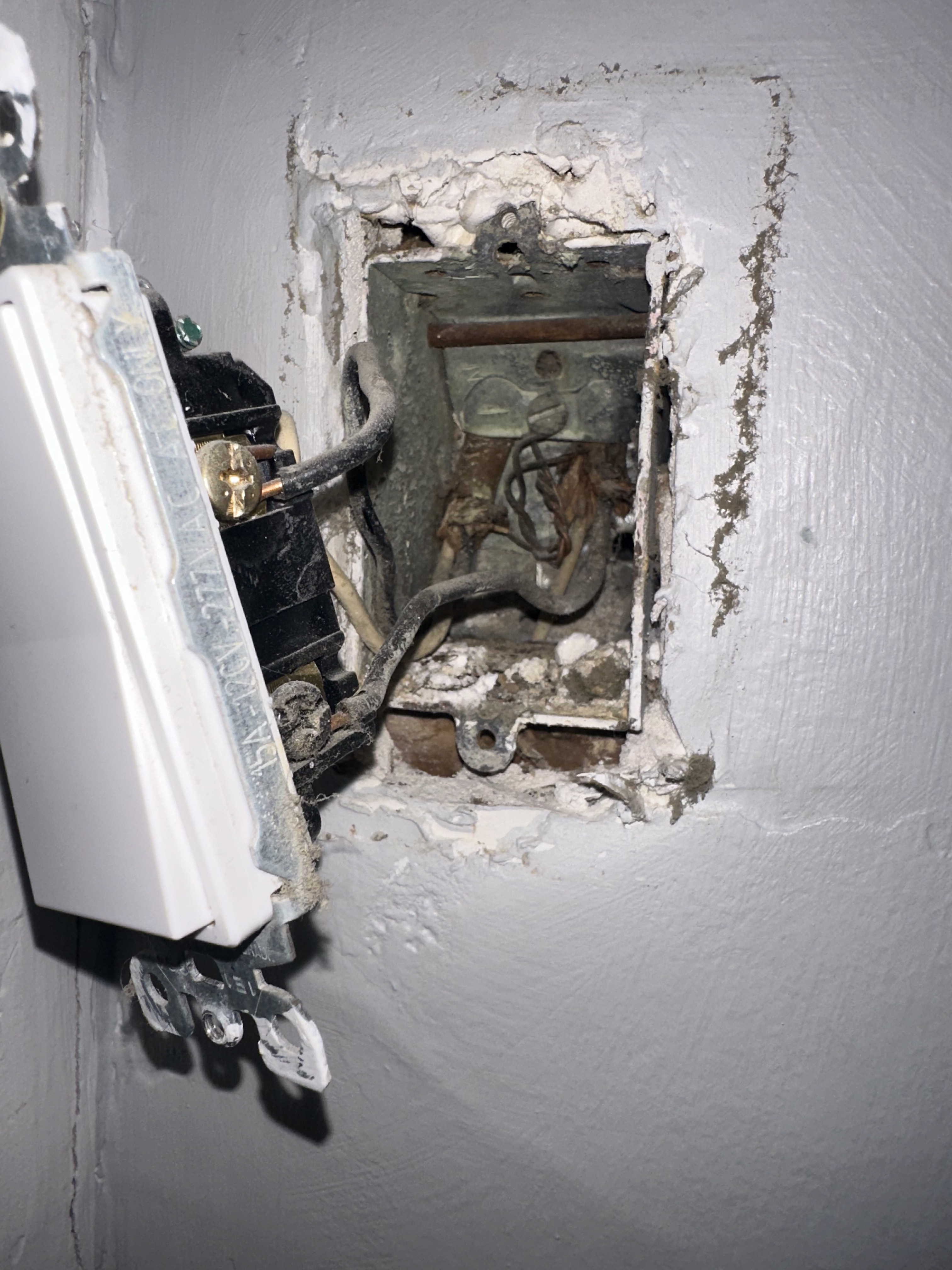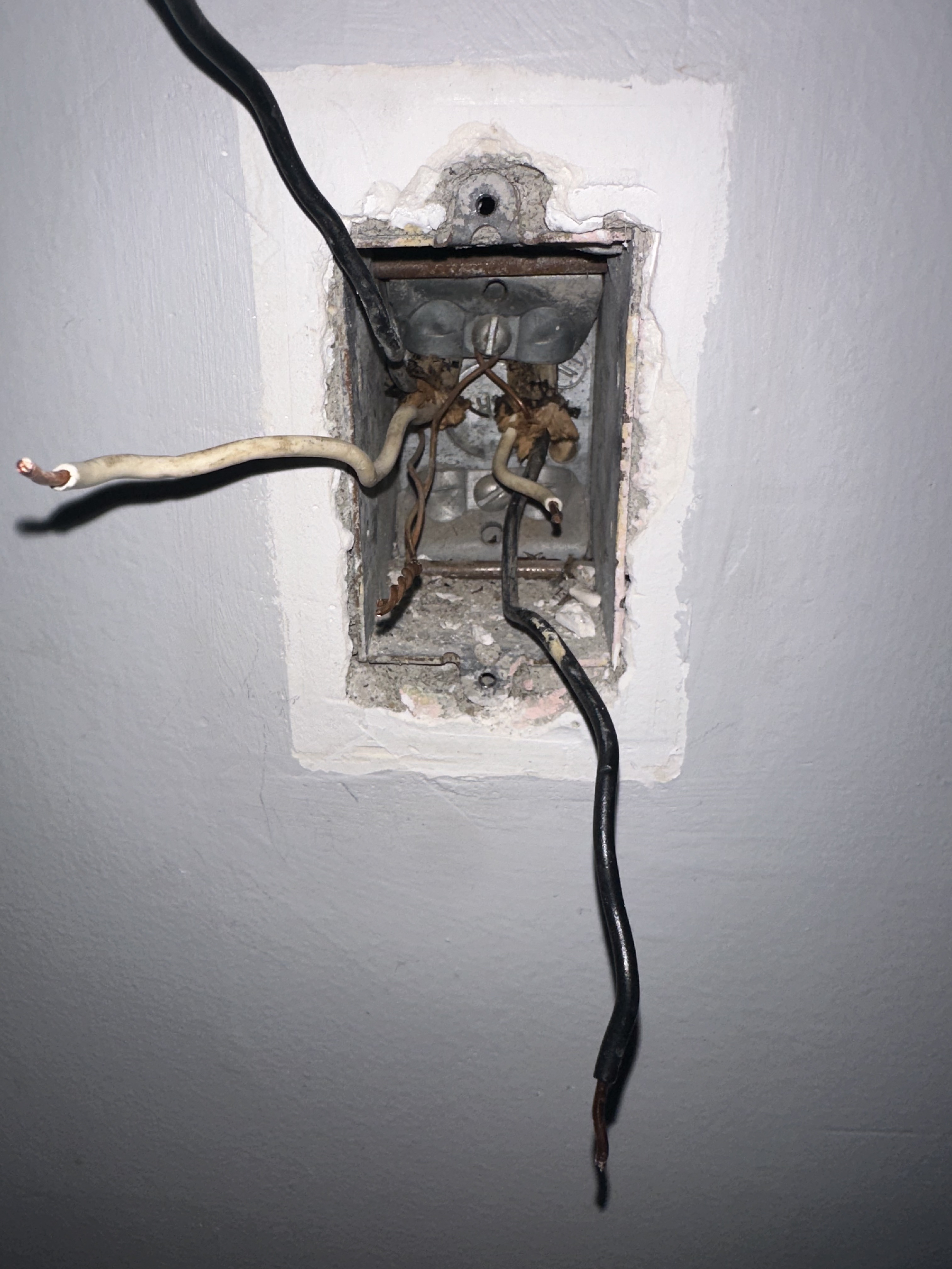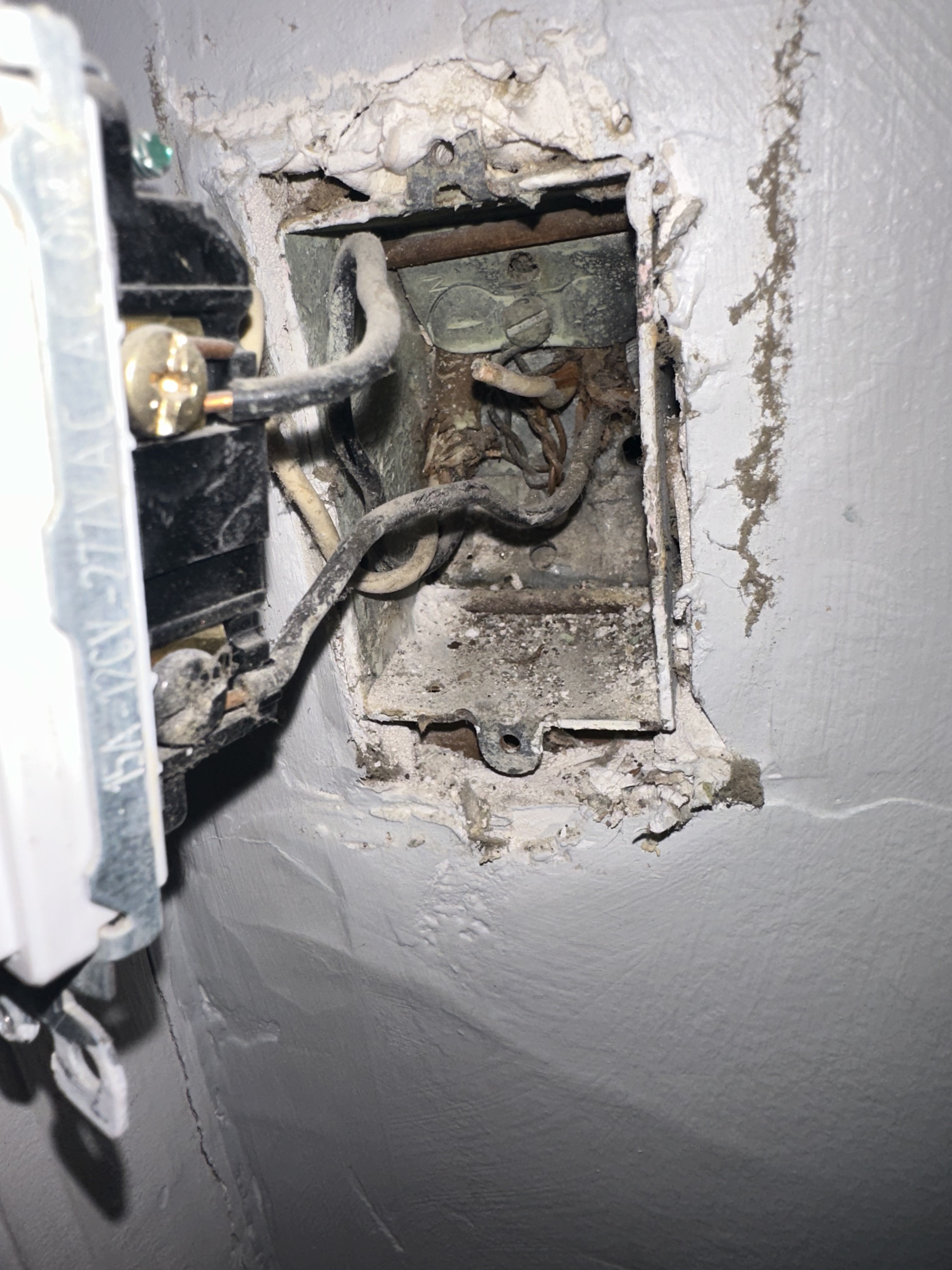 So the last pic you posted with the grey wall . . that is the OTHER box, right? It’s not the same box as in the first picture, correct? This box had the dumb switch? How were those conductors connected?