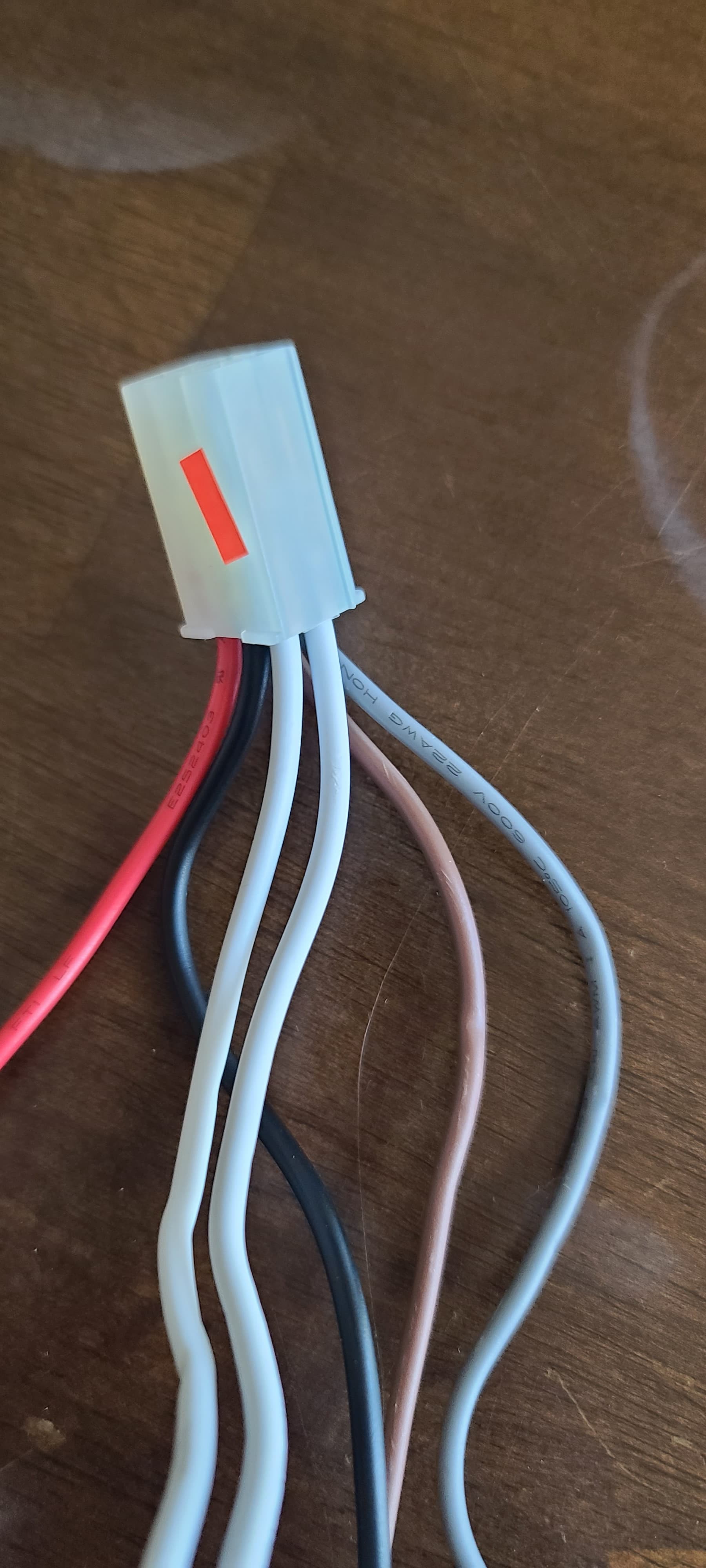 This is the next connection. Again, white = neutral x2, black = line, brown and gray go to fan reverse switch and red goes to capacitor.