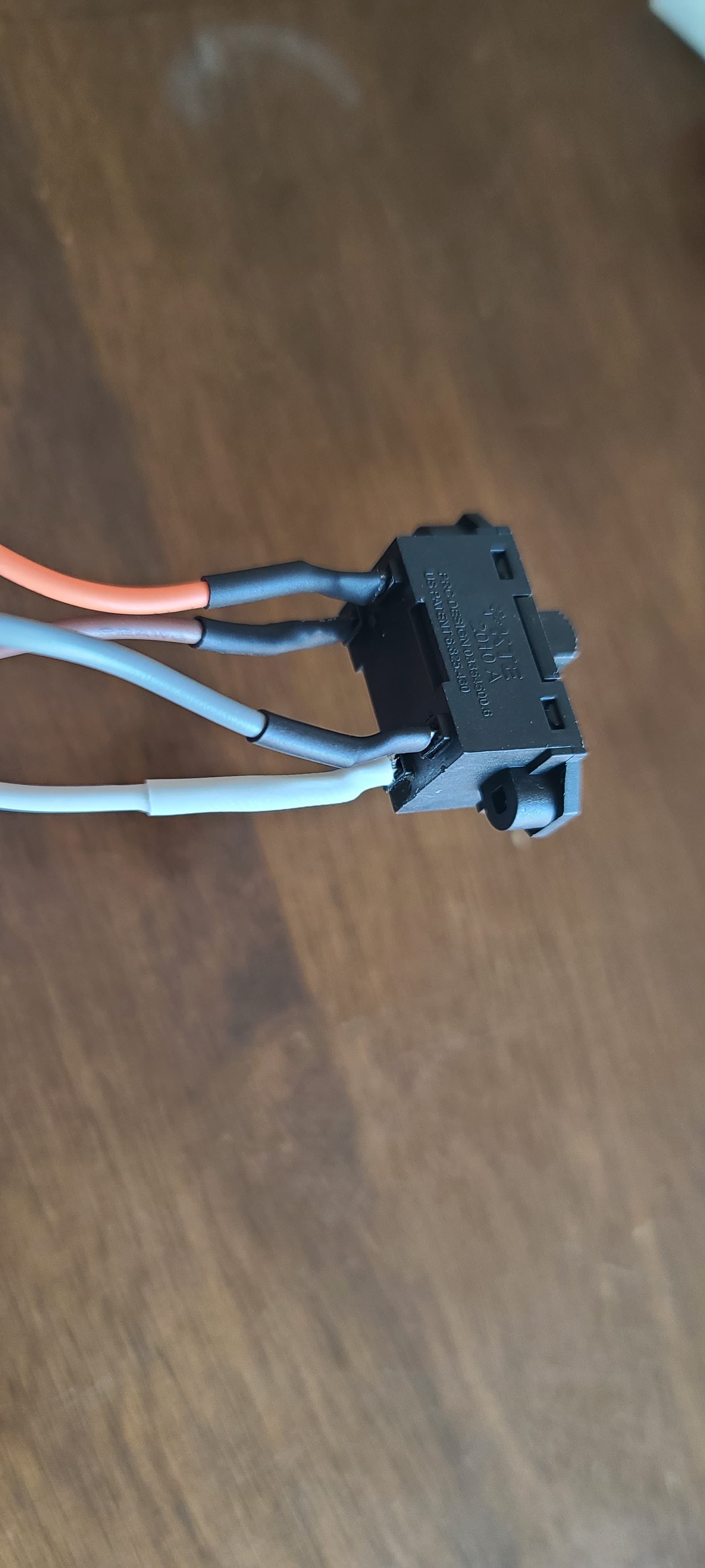 This is the switch for reverse fan direction for winter vs. summer. When to the left, orange wire (from capacitor) and gray wire have continuity. When to the right, orange and brown wires have continuity. White is still neutral.