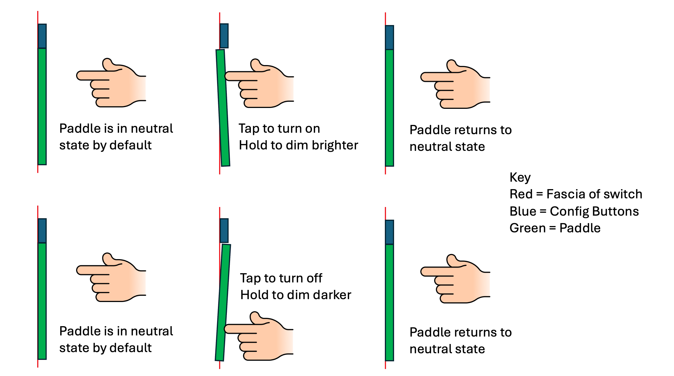 I think it boils down to whether or not we want to have the paddle be able to “rock” back and forth or not. In other words, should the paddle be able to be pressed at the top and bottom or should it just be a singular push and the buttons up top be for dimming?