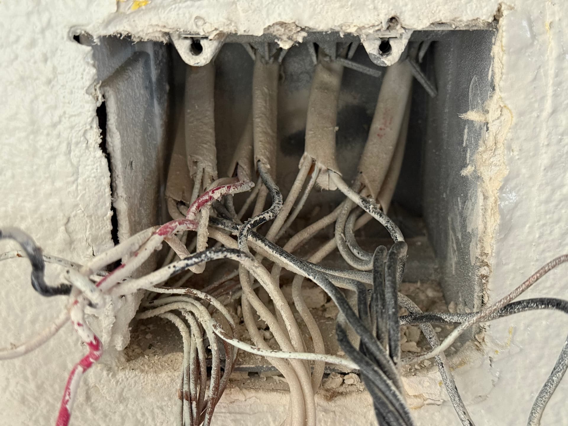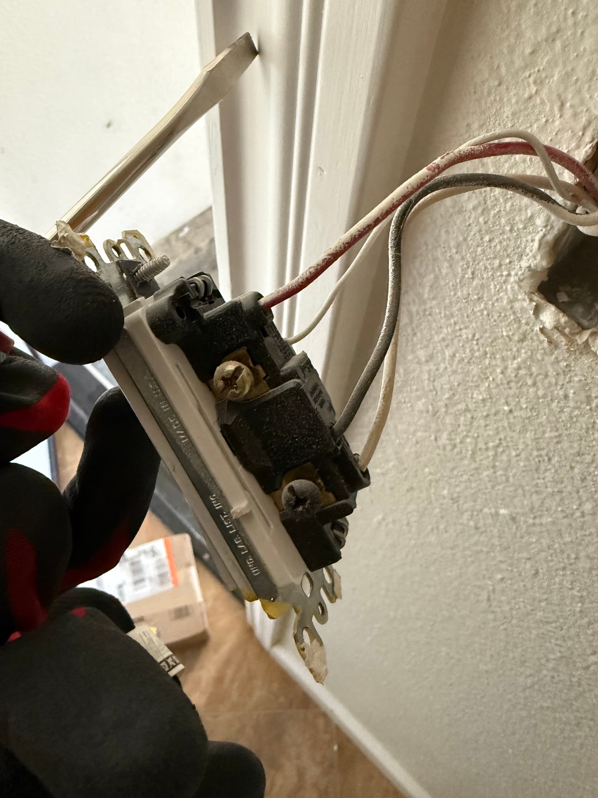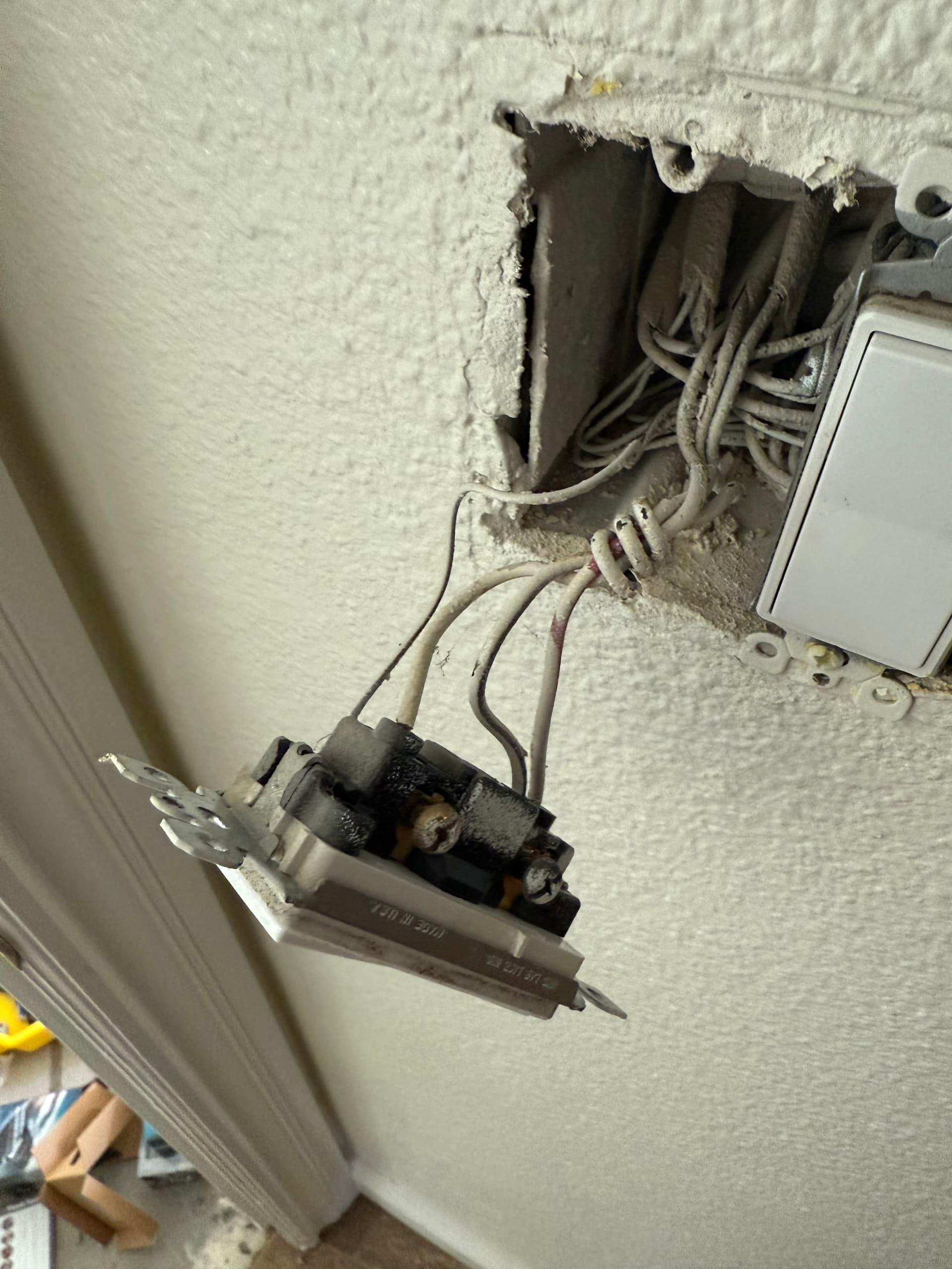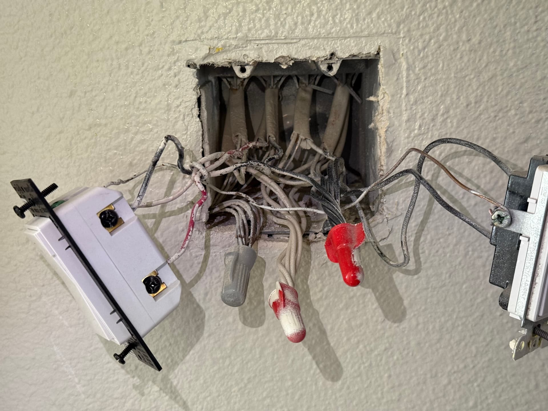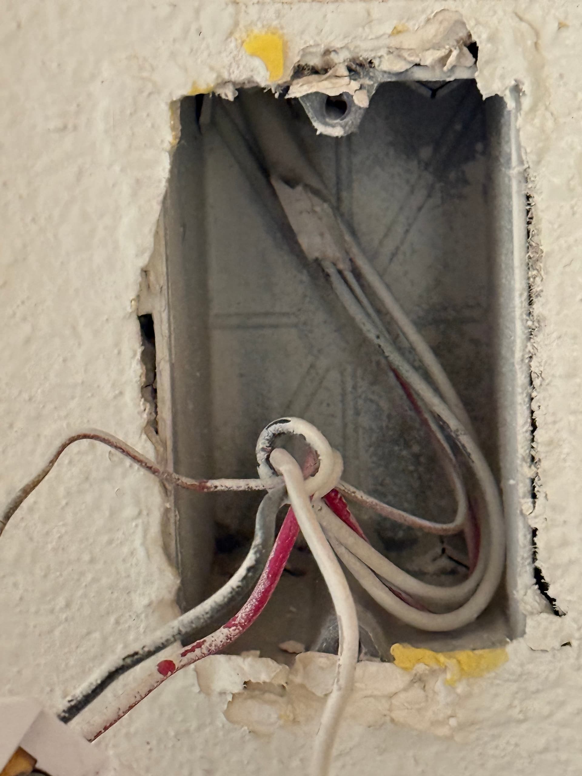 If you want to take more pictures with that dumb switch properly reinstalled and working, I’ll take another look. That box has a crazy fill which makes it extremely difficult. It also doesn’t help that your painters did not stuff the box before they decided to paint every conductor white.