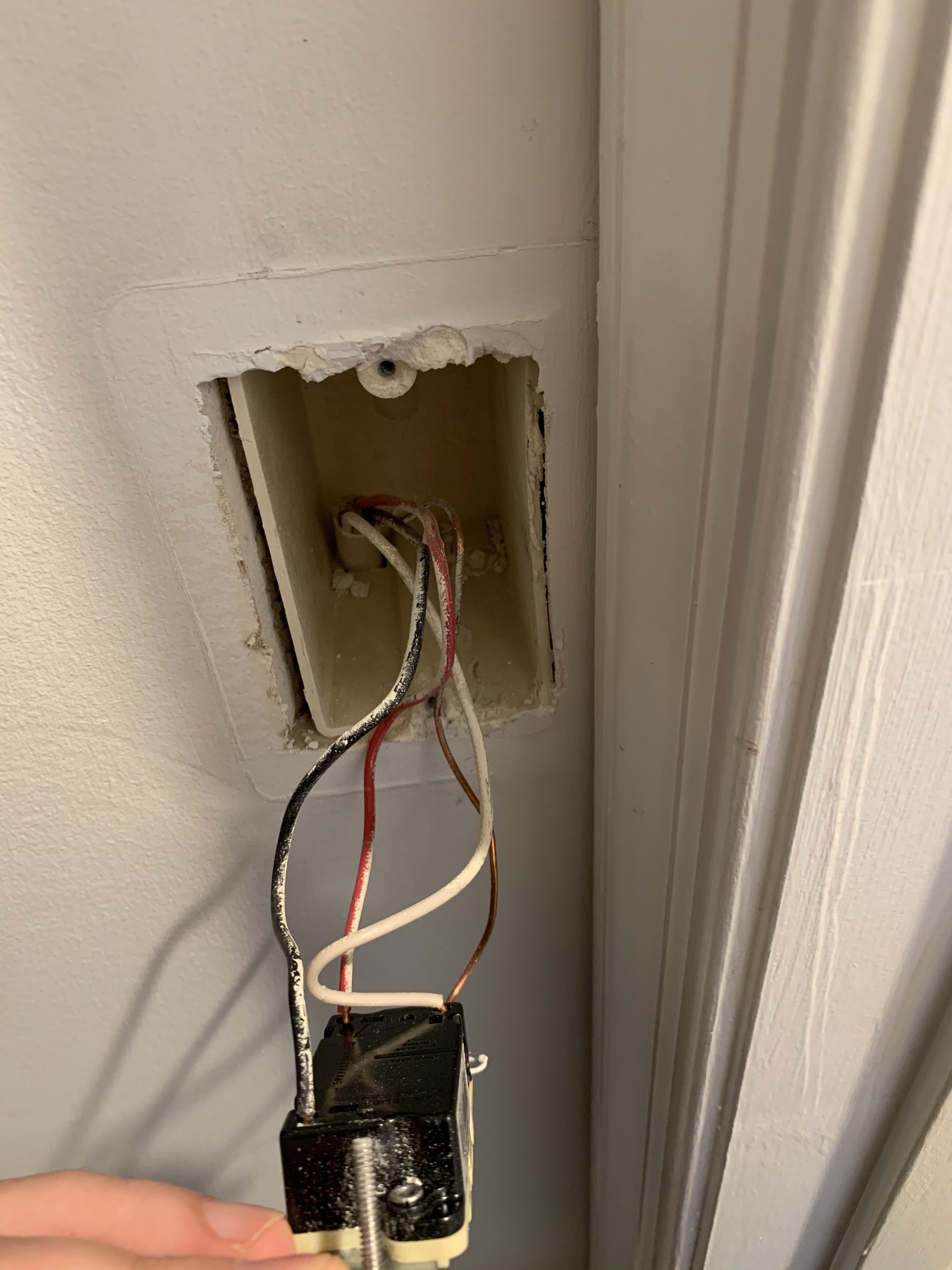There are two other switches in that box, but they are connected to a different circuit in the circuit breaker than the switch in question, so I’m assuming they aren’t part of the equation here, but let me know if that’s wrong.