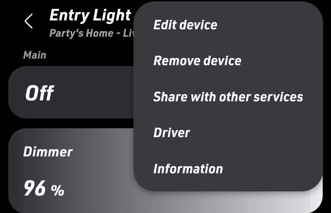 Clicking on 3 dots in Smartthings app switch section it does not show settings option.