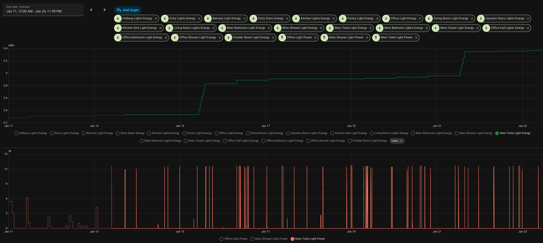 Maybe another interesting thing seen on power measurements here is the drastic change in power reporting on Jan 13. I’m not really sure what that’s about.