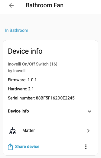 In the list of available drivers, I only see āMatter Switchā and āMatter Sensor,ā both provided by SmartThings. Switching to āMatter Sensorā exposes the humidity readings, but disables control of the child devices. Unfortunately, Iām not offered any Inovelli-specific driver for this switch.