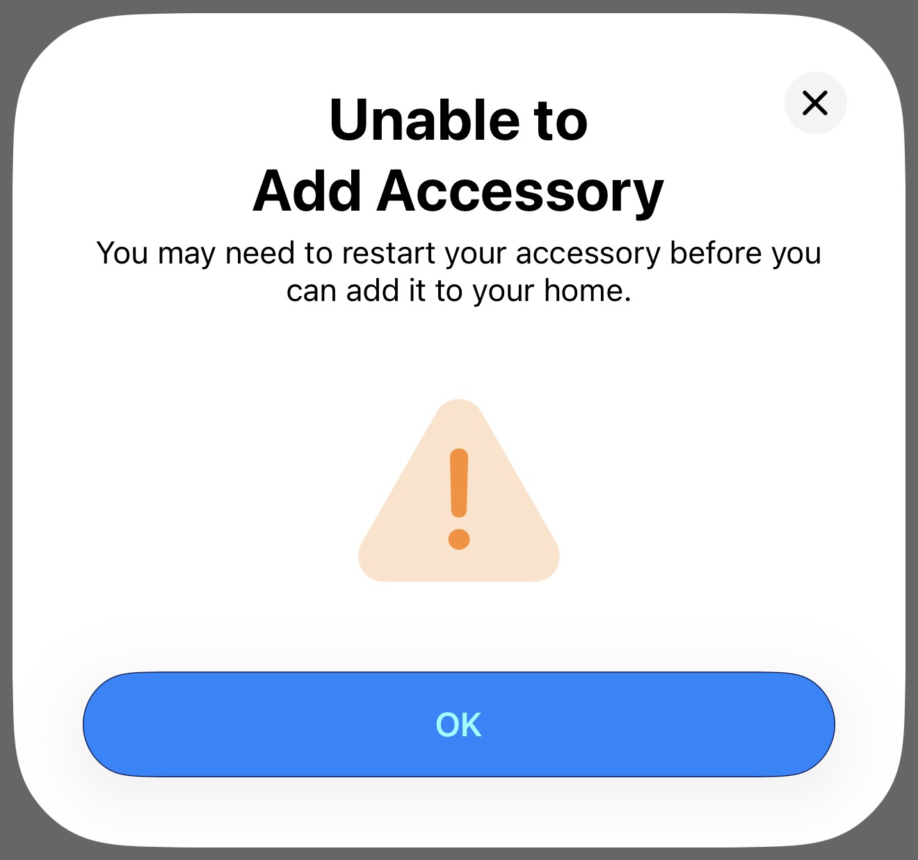 When adding the switches, they will often go through the normal flow (strobe blue, flash green, go back to blue, flash green). But then in the Home Assistant App on my phone, it hangs for a while and then finally gives up and says Accessory can not be added. Tried to go back through the Factory reset and start again process multiple times, with multiple different Inovelli switches. No luck at all!