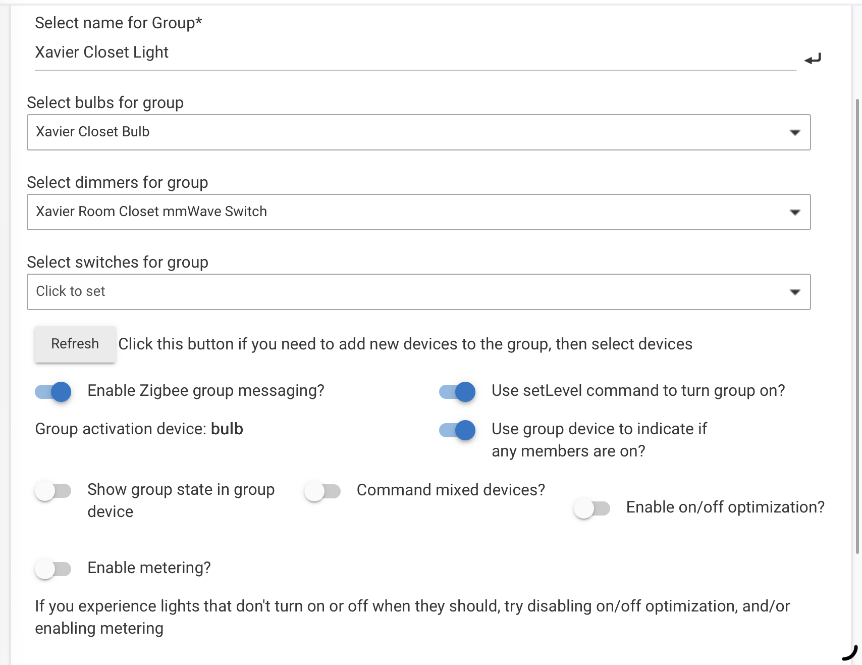 The instructions are nice! The only thing that I hadn’t done was add the group bind number in the dimmer’s driver. I added that, but unfortunately, not seeing anything different. However, I wonder if that is because I also have a direct binding… Will have to remove it later to see if it makes a difference.