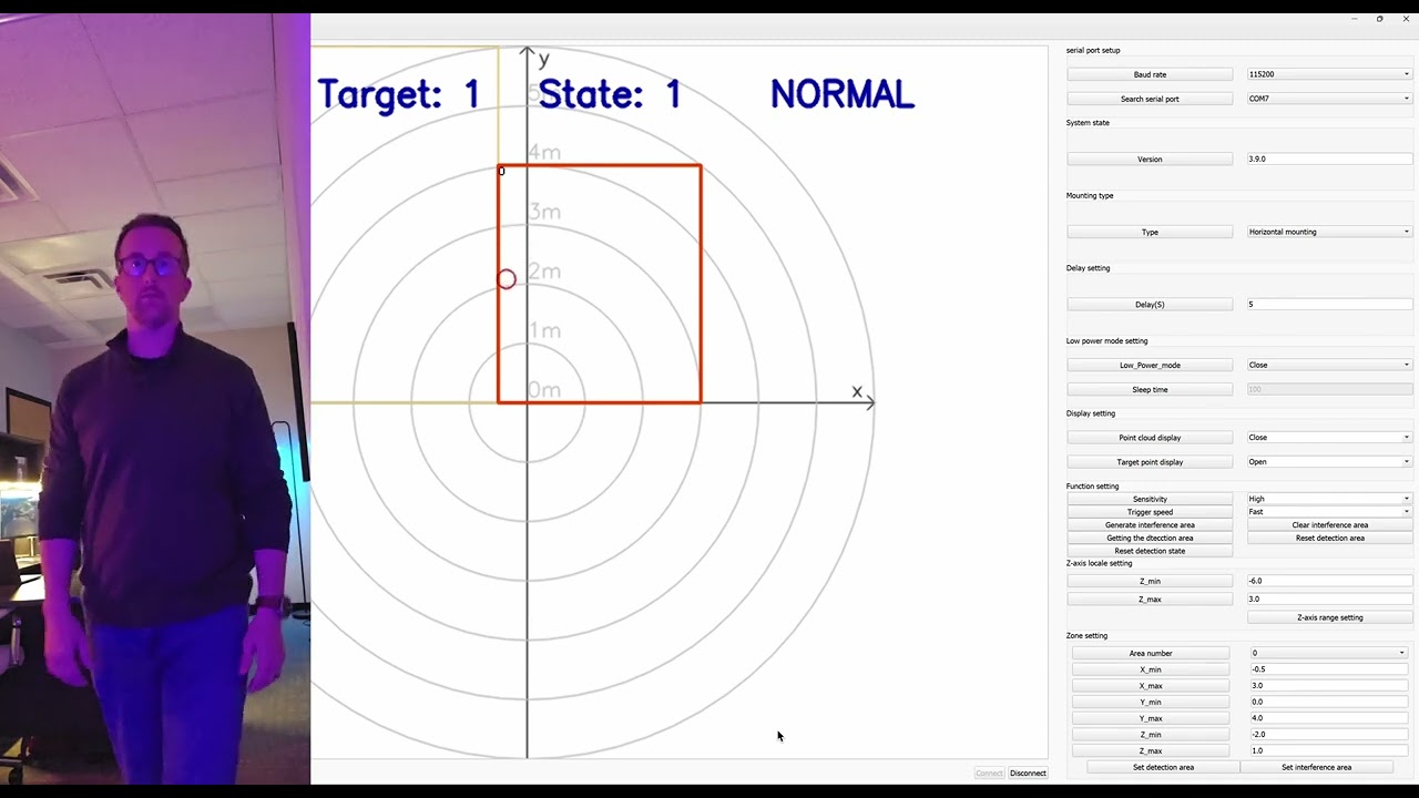 As for what you’re seeing, this was just a quick demonstration I setup for Linus’s team. The red rectangle is the detection zone, that I set that encompases my office up until the edge of the desk. I set it at the edge of my desk so you can see me walk outside the zone and presence is no longer detected. The amount of time can be adjusted for when you leave the zone in case you want it instant like in the video or if you want to set it for x minutes after you leave.
